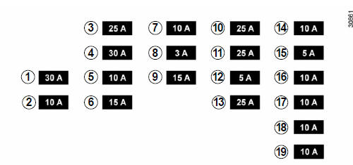 (la presencia de los fusibles depende del nivel de equipamiento del vehículo).