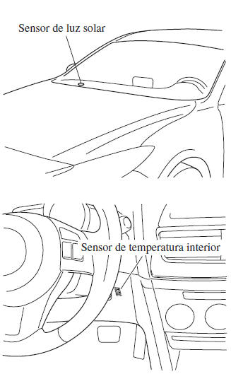 Mazda 3: Sensor de temperatura/luz solarEl sistema de acondicionador de aire mide las temperaturas del interior y exterior, y la luz solar. Luego se ajusta la temperatura interior del compartimiento de los pasajeros.