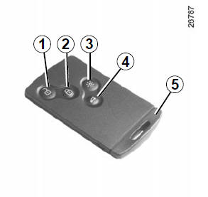 Responsabilidad del conductor No abandone nunca su vehículo con la tarjeta RENAULT y un niño (o un animal) en el interior, aunque sea para un momento. De hecho, éste podría ponerse en peligro o poner en peligro a otras personas arrancando el motor, accionando los equipamientos como por ejemplo los elevalunas o incluso bloqueando las puertas. Existe el riesgo de graves lesiones. |